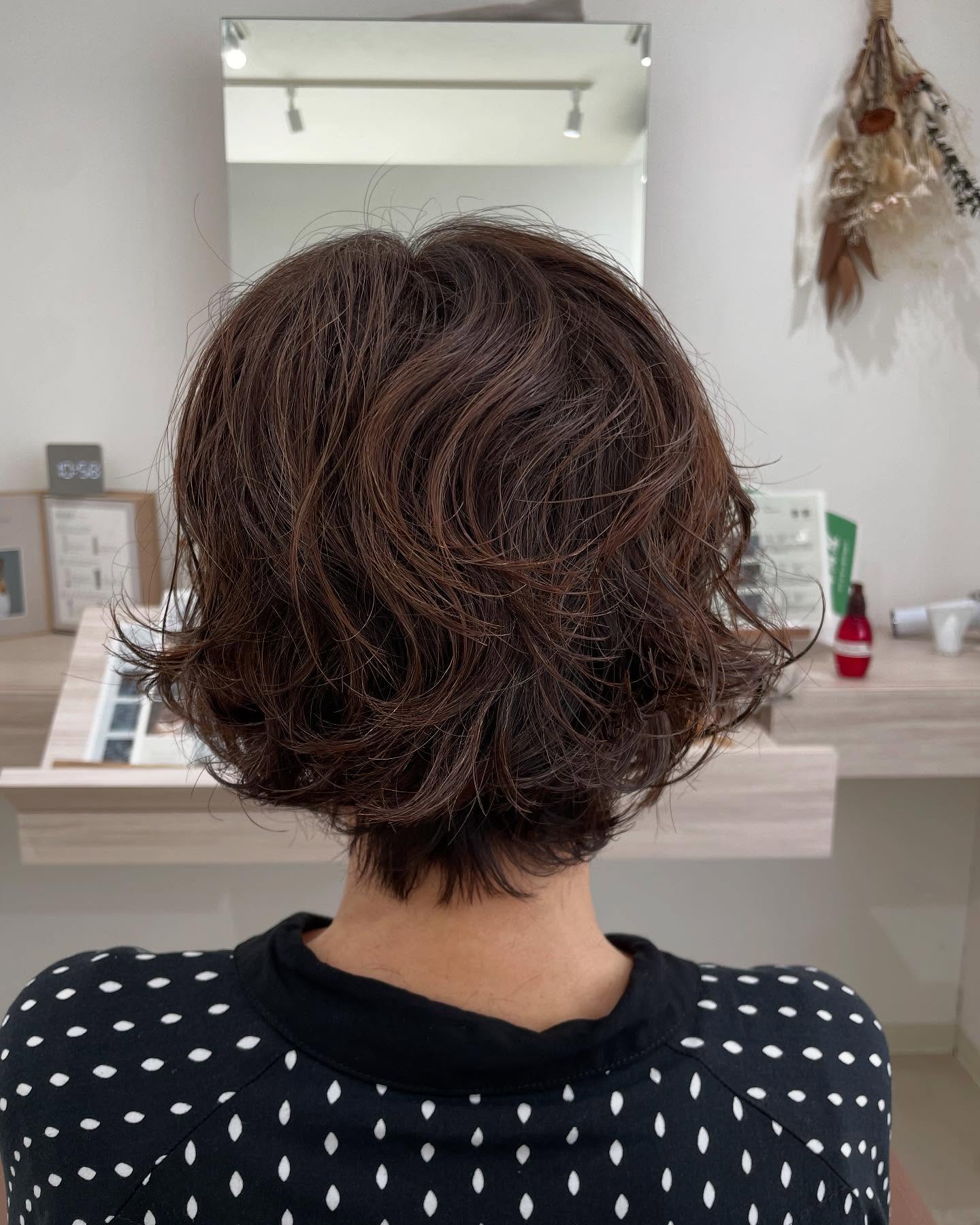 ショート レイヤースタイル ボブ パーマボブ クセを活かす ナチュラルブラウン 涼しげヘア バイカルテ hair 太田市 群馬 太田市美容室 ヘアサロン ヘアスタイル ヘア 太田イルミナカラー 太田市カラー 太田市髪質改善 太田市カット 西海岸風サロン 太田美容室 高崎美容室 伊勢崎美容室 群馬美容室 完全個室 個室美容室 髪質改善 メリア マリブヘア太田美容室メリア