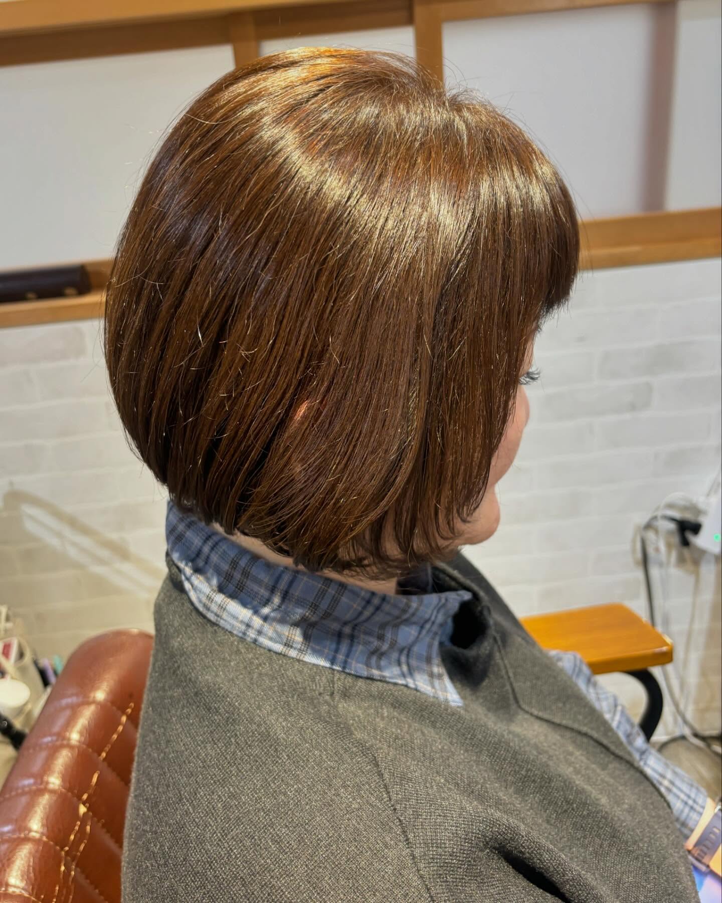 アッシュブラウンカラーの前下がりボブ