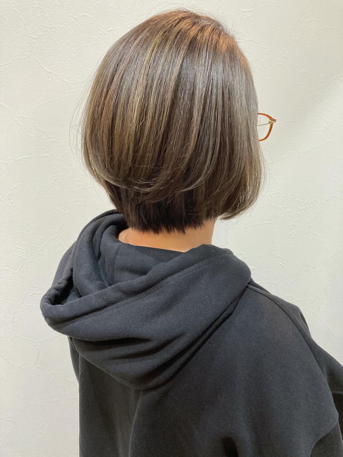 白髪ぼかしのハイライトを入れたショートボブ