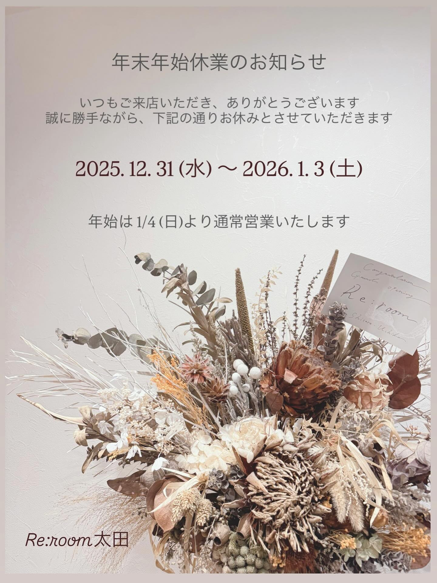 1/4(日)から通常営業いたします