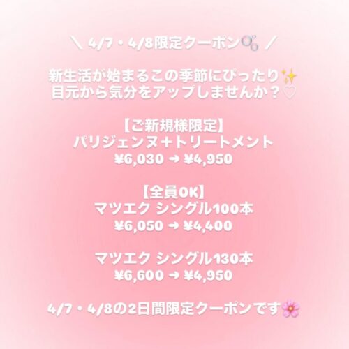 4/7・4/8の2日間限定クーポンです…
